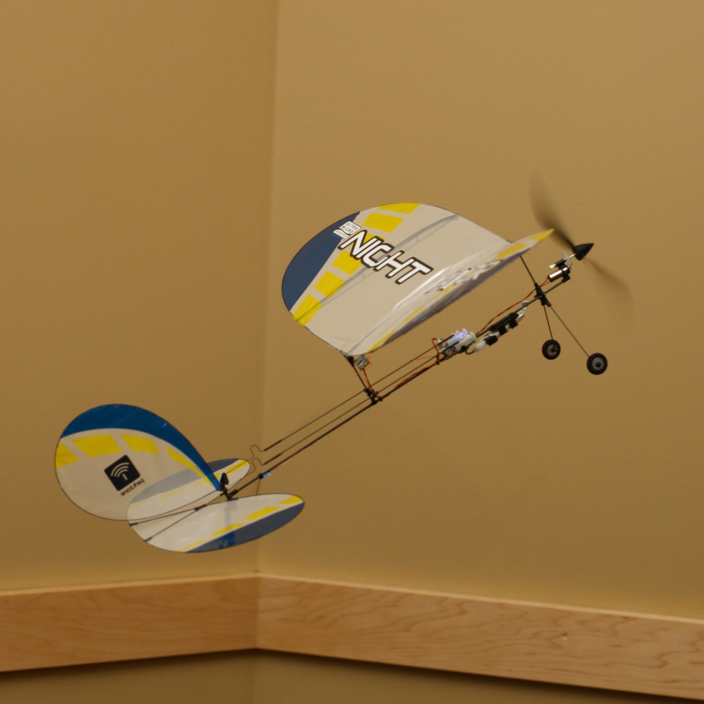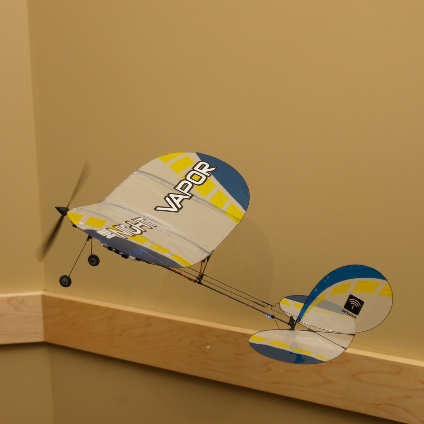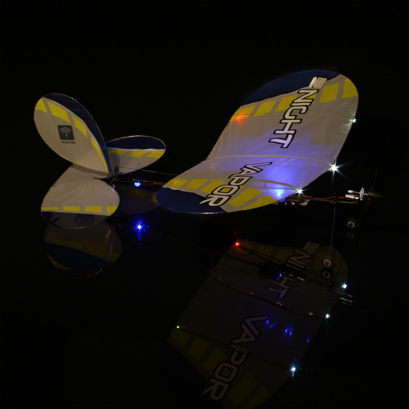 Like the original Vapor® aircraft, the Night Vapor™ model is slow enough and light enough to fly indoors, and comes equipped with bright LED lights that allow you to fly in the dark. Its modular design makes replacement of parts quicker and easier.