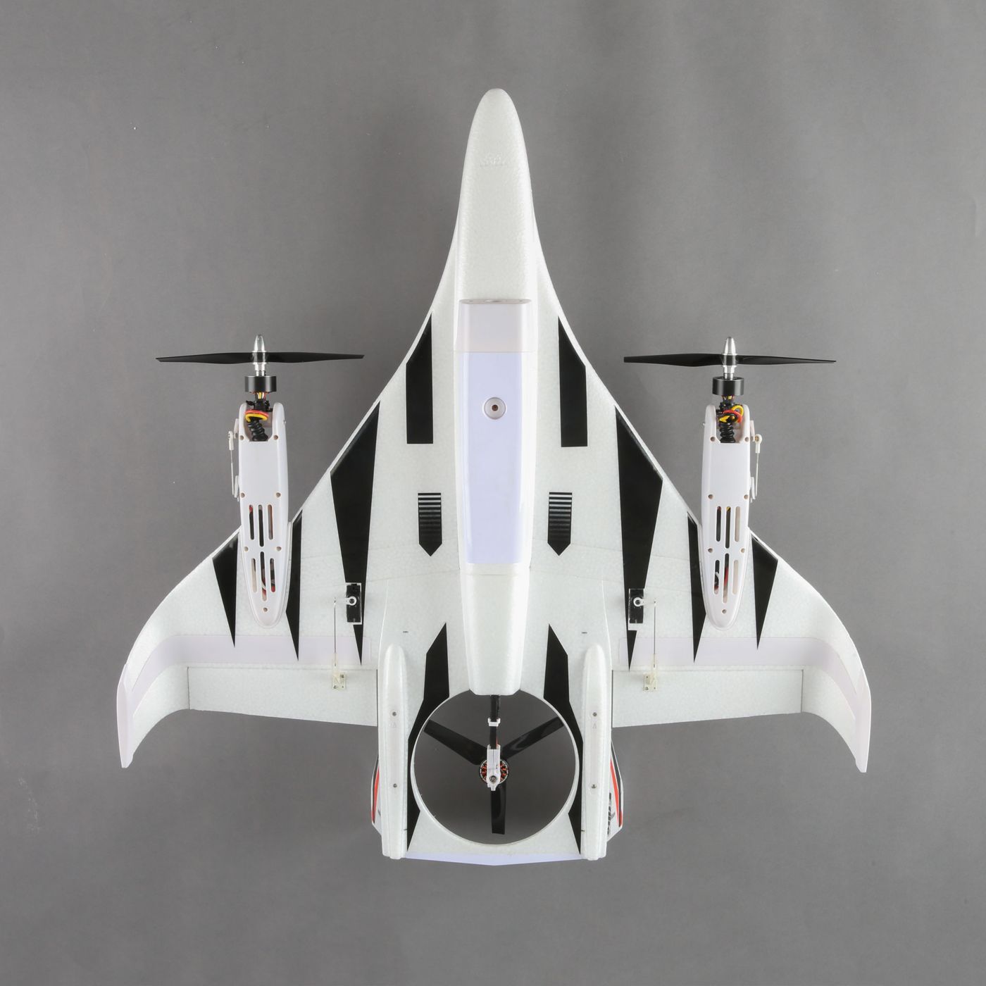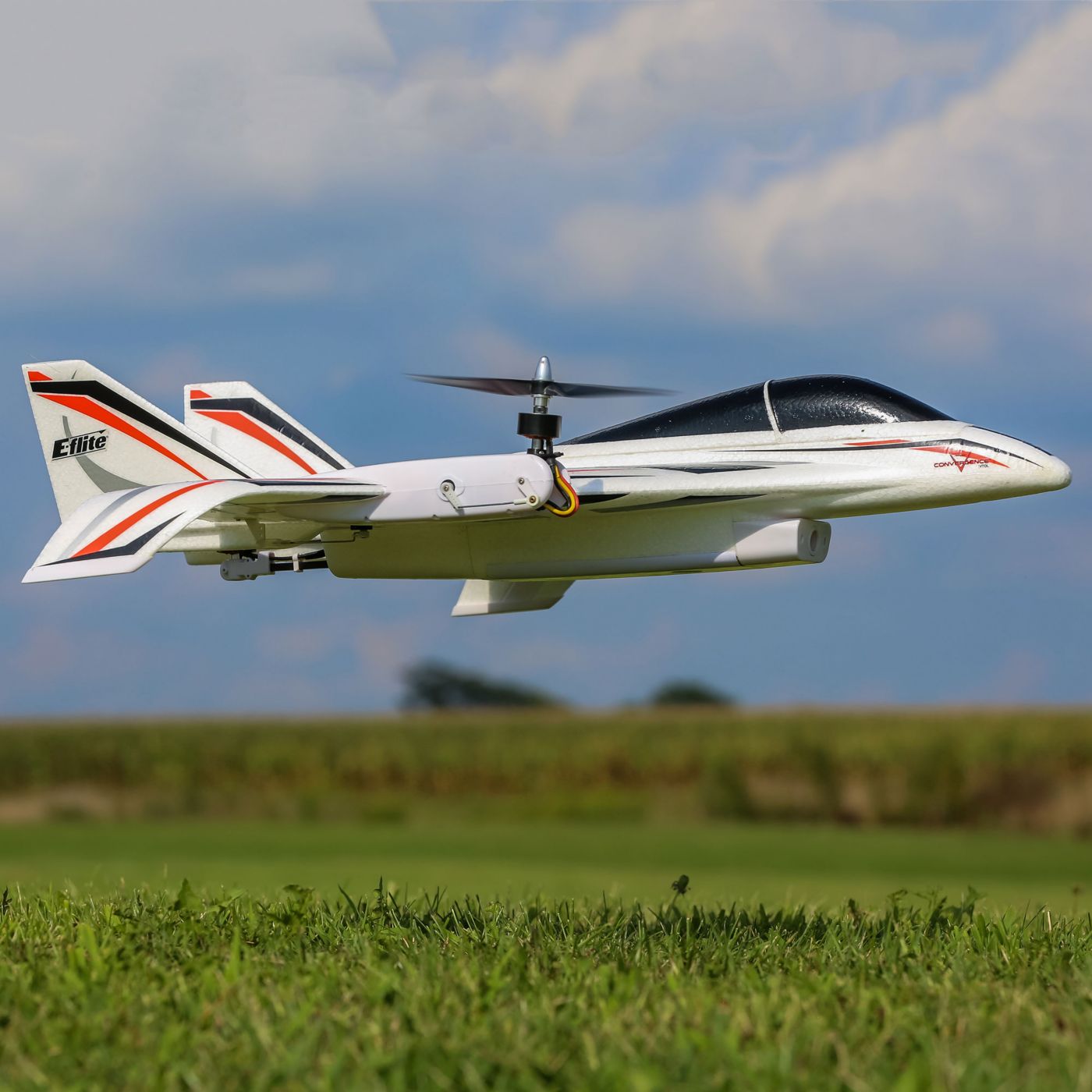 This Bind-N-Fly® version can be flown with any full-range, 6+ channel DSMX®/DSM2® aircraft transmitter and comes equipped with a Spektrum serial receiver that is connected to the flight controller. No complex transmitter setup or programming is required. You use your “GEAR” switch for selecting Stability or Acro mode and your “AUX 1” switch to transition between multirotor and airplane flight.