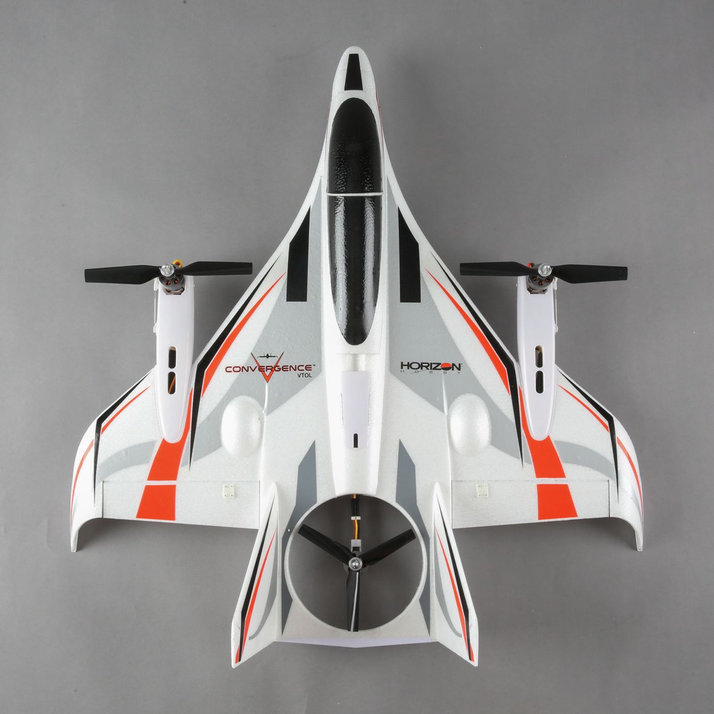 VTOL (Vertical Takeoff and Landing) RC models are usually a mixed bag when it comes to performance. If they are stable, their speed and agility is often lackluster. If they are nimble, pilots have to work harder to transition between hovering and airplane flight. The Convergence® VTOL park flyer changes all that. Its unique design and exclusive flight control software give you the best of both agility and stability while making the transition between multirotor and airplane flight so smooth and predictable, you will feel right at home your first time on the sticks.