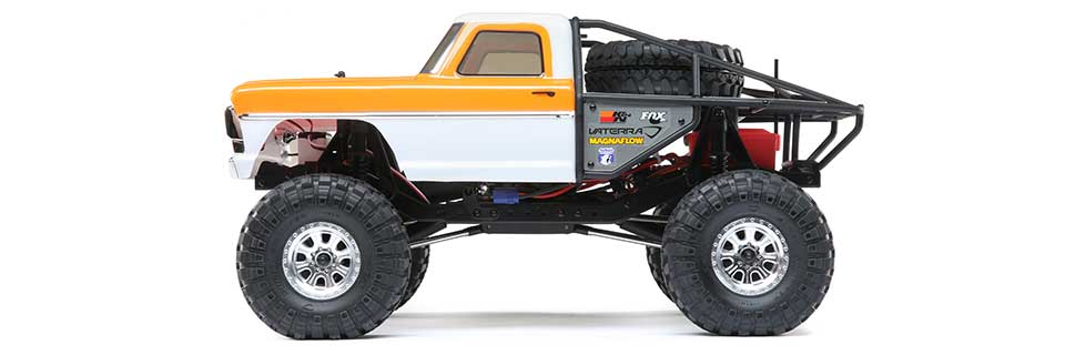 Ready to crawl with attitude? The VaterraÂŽ 1968 Ford F-100 Ascender Bind-N-Drive has it all: working LED lights, an officially licensed Ford F-100 body and a caged back with real aluminum panels and spare tire. Take your love of classic Fords to the next level with jaw-dropping scale details. The cab is painted in an era correct two-tone color combo and you can customize it from there. Use this truck with your existing Spektrum radio and hit the rocks with full force. Your next adventure is calling. Answer with the Ford F-100 Ascender.