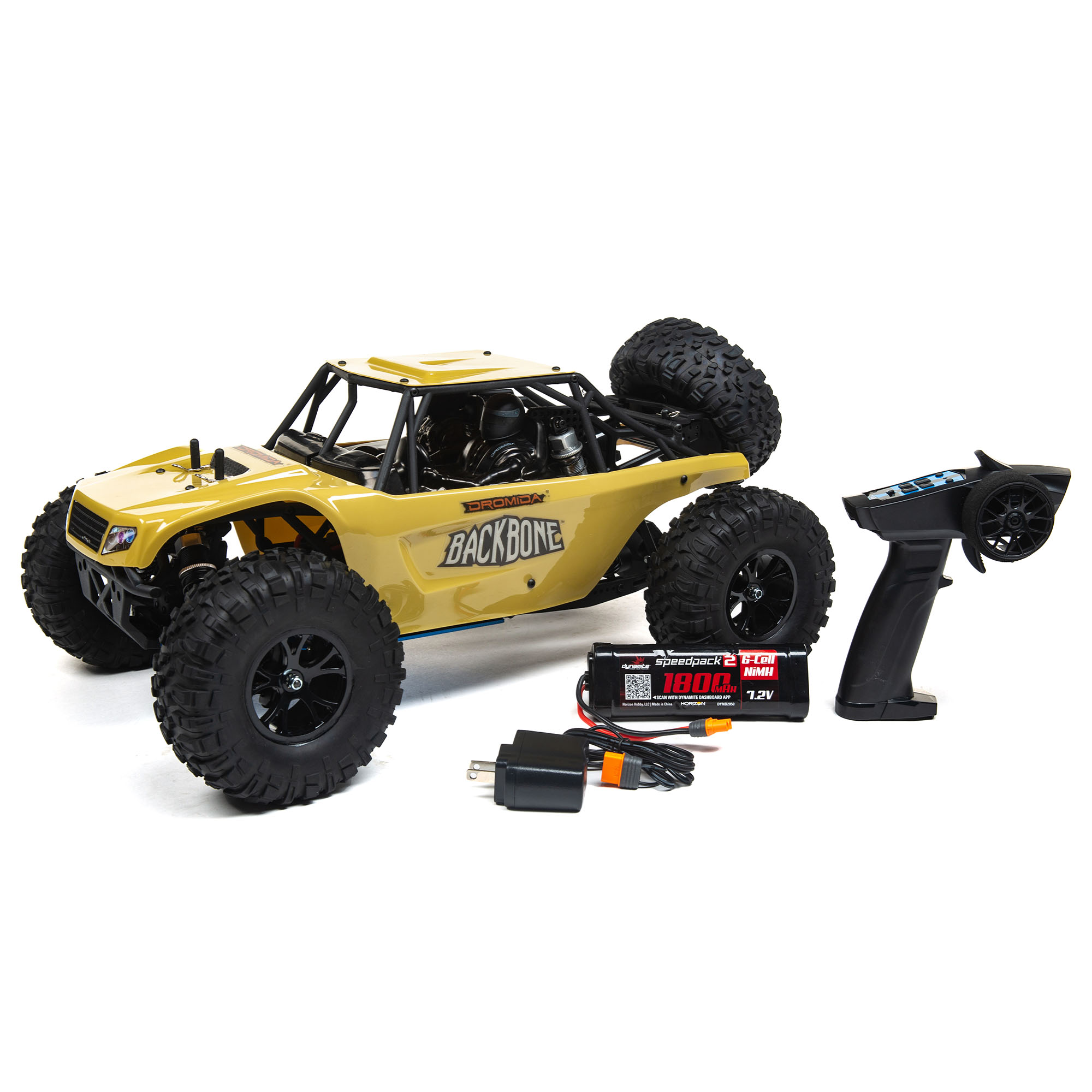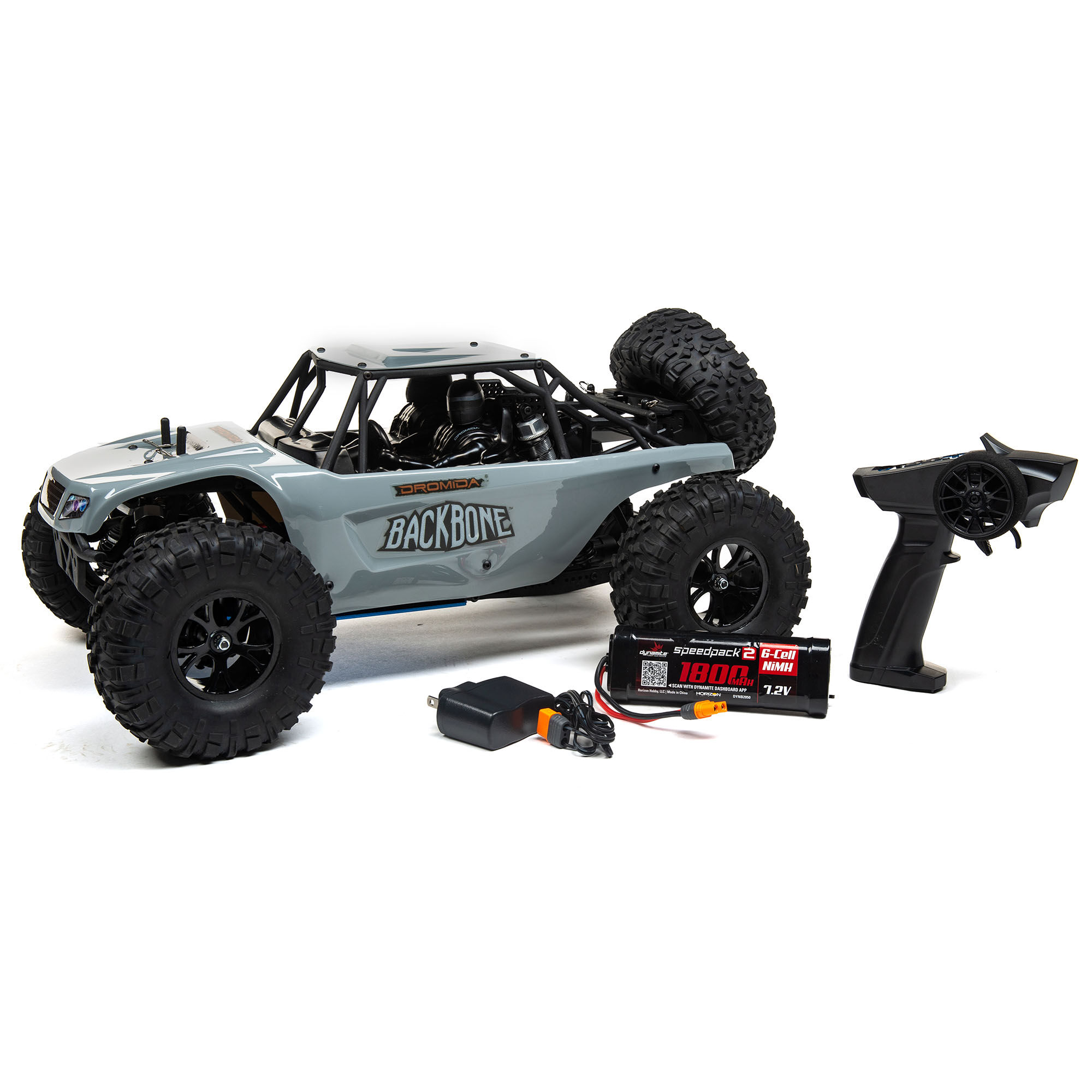 Enjoy all-terrain RC rock racing fun with the ready-to-run, 1/10 scale DromidaÂŽ Backbone⢠4WD. Fully assembled and equipped, it has the strength and power to make fast moves over backyard and back country terrain â at a price that anyone can afford.