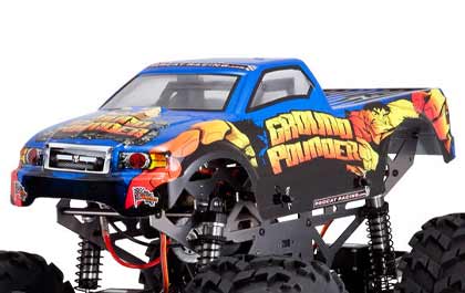 Are you ready for Car crushing, dirt slinging, Monster Truck action? Then youâre ready for the very first 1:10th scale solid-axle RTR RC monster truck that ever hit the RC market, the Ground Pounder!