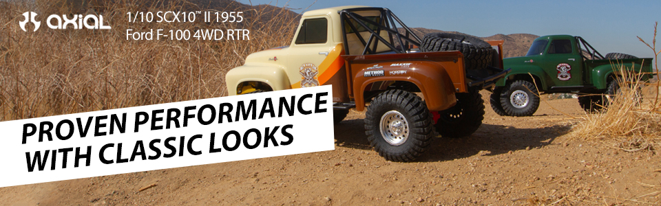 AxialŽ unveils its first scale Ford body - an officially licensed, detailed 1955 Ford F-100 - as the topper for its latest trail performer featuring the SCX10⢠II 4X4 chassis.