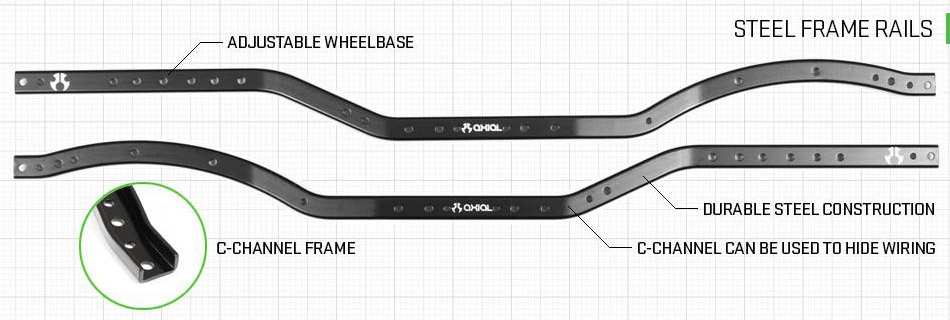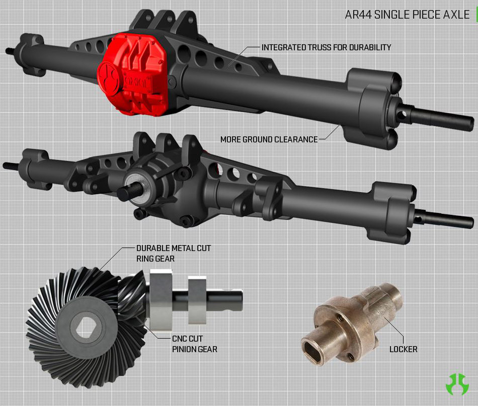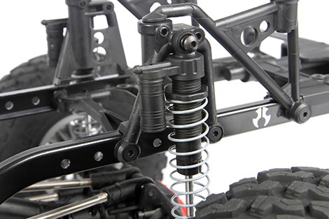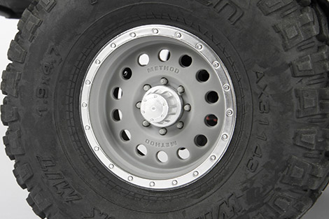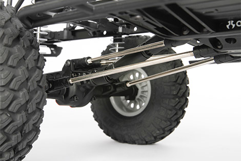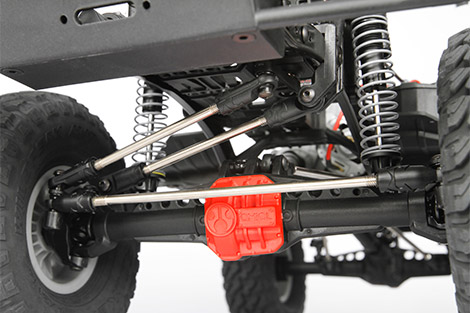 To keep the Blazer rolling along in even the toughest situations, we've mounted it on our rugged SCX10⢠II chassis. High-clearance AR44 high-pinion axles, a chassis mounted servo (CMS), re-designed AX10⢠transmission case and tough steel suspension links are just a few of the parts that make the Blazer a beast on any terrain.