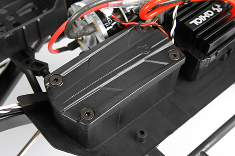 But this Blazer sports more than just a macho look. Additional items like chrome-coated grille, mirrors and door handles are included. Officially licensed Chassis Unlimited front and rear tube bumpers are mounted tight to the body for maximum clearance and a set of offroad light (with LEDs) shine some light when the action goes dark.