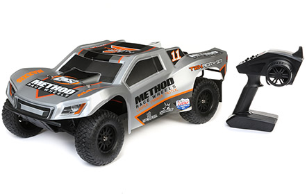 Whatever is in its way, the LosiŽ TENACITYŽ SCT Short Course Truck can go through it. Taking several design cues from Team Losi RacingŽ, this SCT is built on the original TEN platform-known worldwide as one of the toughest platforms around. The TENACITY SCT includes a full metric hardware package and was design to be tough and tunable thanks to its race-engineered composite chassis. The bottom loading battery makes it easy for quick battery changes and the entire waterproof power system uses DynamiteŽ 60A ESC and a 12T brushed motor for speeds of 25+ MPH right out of the box. Drivers stay in control with a Spektrum⢠STX2Ž with a Spektrum Receiver and scale to size Maxxis Razr MT tires. Finally, the TENACITYŽ SCT features an updated body with your choice of either Method Wheels or Fox Racing Shocks graphics to stand out wherever it goes. You get all this and more from the brand that represents the pinnacle of performance.
