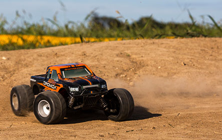 In go-anywhere 1/18 scale, the DromidaÂŽ MT Monster Truck 4WD recreates the excitement of full-size monster trucks that world-class drivers push through adrenaline-charged stunts and freestyle course competition. Its compact size can turn your home's hallways into the setting for exciting racing at any time of the day or night, regardless of the weather or season. The rugged design is also ready to take on outdoor challenges, whether on gravel, short grass, pavement or concrete. All-weather electronics even let you run safely in the rain, mud, and snow.