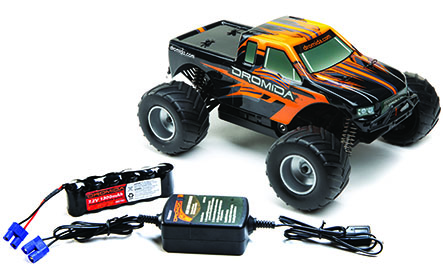 Affordable and fully equipped, the Dromida 1/18 scale MT Monster Truck 4WD comes ready to run right out of the box with everything you need. Even if you've never touched an RC transmitter before, you can take the wheel with total confidence. The rugged, reliable four-wheel drive system and high-traction tires supply balanced traction and secure handling. While its new and improved Torque 370 motor pours on the power, Big Bore oil shocks soak up bumps and ball bearings supply the glide for smooth, low-friction performance and high speeds.