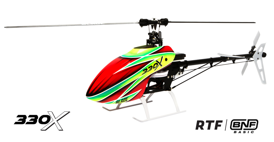 The BladeÂŽ 330X RTF is the all-in-one solution for intermediate helicopter pilots looking to take on thrilling aerobatic maneuvers with a convenient and capable machine. Carbon fiber blades rip through the air and give a clean and rigid flight experience. High performance metal gear digital servos offer crisp, precise response on all flight controls providing locked-in and predictable commands in the air. Add in the included 3S 2200mAh battery and 45A ESC and this heli delivers plenty of punch. Plus, everything you need is included in the box.