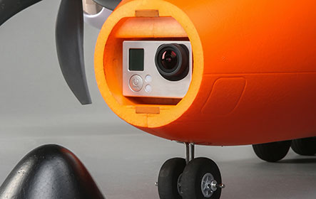 Remove the magnetically secured nose cone to install a GoProÂŽ or similar camera for recording aerial HD footage, or mount a separate FPV camera on the large top hatch (cameras and camera gear sold separately). Plus you can use the included decals to customize the scale-inspired trim scheme with Air Force, Army, Coast Guard, Marines, Navy and other markings to personalize your model.