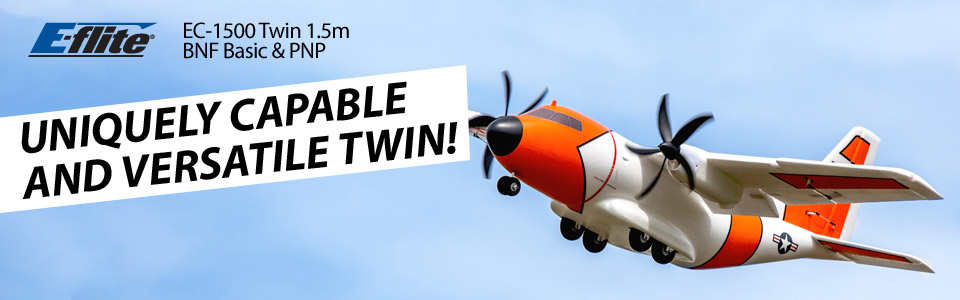 The E-fliteÂŽ EC-1500 Twin features an all-new, ground-up design optimized for capability, versatility and FUN to deliver a flying experience you simply can't get with any other airplane! It's effectively many airplanes in one, with a wide flight envelope that includes slow and scale-like, to sport flying and even aggressive 3D aerobatic capability.