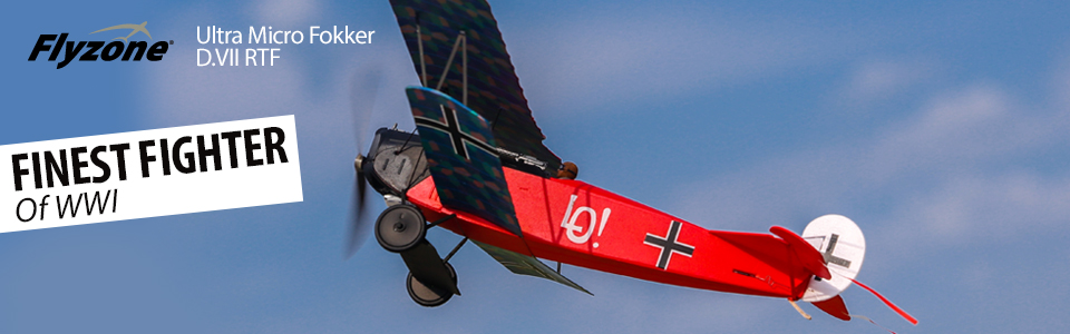 Bold and immensely talented, Ernst Udet helped to close WWI as Germany's second-highest scoring ace with 62 victories. Internationally accepted as the finest fighter of the era, one particular Fokker D.VII he flew boasted an inspirational color scheme designed to honor his sweetheart and taunt all in the sky who challenged him. The FlyZoneÂŽ ultra-micro Fokker D.VII RTF beautifully replicates the historic masterpiece with an RC version that's ready-to-fly and engineered so that even novice pilots can reenact missions indoors and fly daring patrols in backyard spaces.