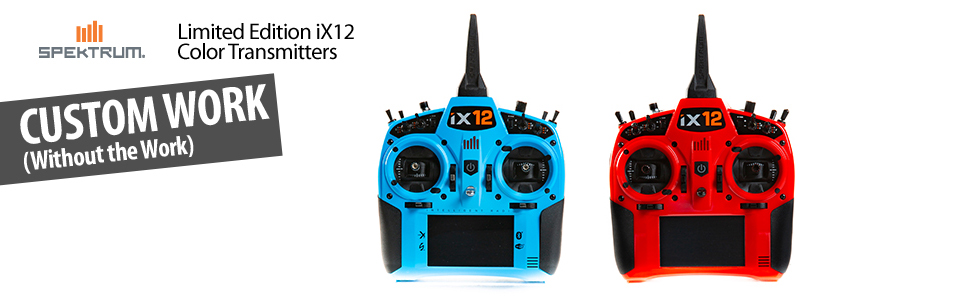 It's a hit! How do we know? Because thrilled pilots around the globe are going all out to personalize their Spektrum⢠iX12 transmitters with custom colored cases. The effect is wicked cool and adds a lot of personality to your radio.