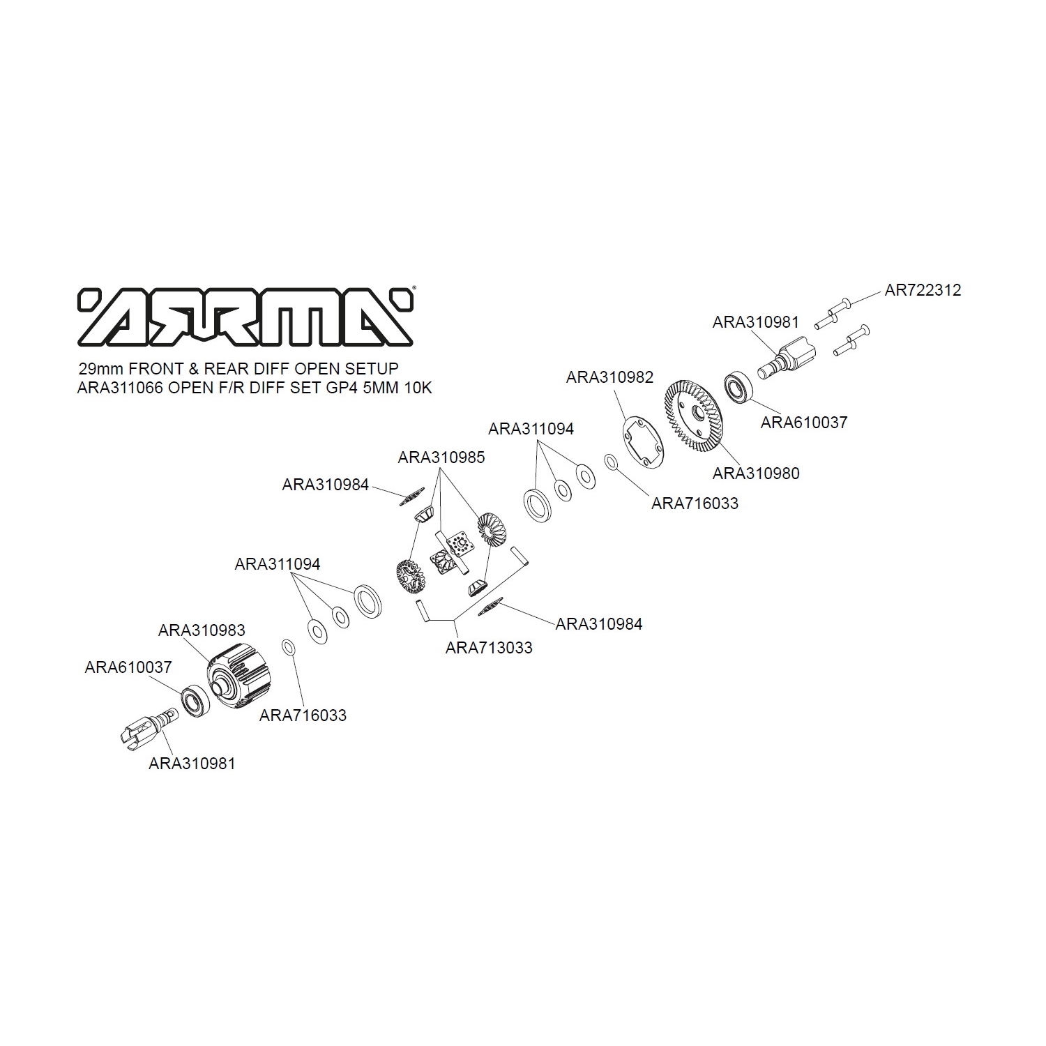 This Front or Rear Open Spiral Cut Diff Set provides a pre-assembled unit for your ARRMA vehicle