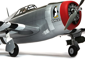 The Hangar 9ÂŽ P-47D Thunderbolt 20cc ARF takes the popular warbird a bold step further. No stranger to making a great flying P-47D model, lightweight, laser-cut construction combines with expert craftsmanship to bring a durable, all-wood airframe with incredible realism and great performance. The result is a model replica that's a blast to fly and looks as though it belongs in a museum. Highlighting its outstanding appearance is a rich film covering with incredible detail and a satin finish. Stunning only comes close to the description of how the intricate panel lines and soft color transitions take this iconic warbird to deeper level. Plus, it's easy to maintain and durable. Multiple nose-art decal options included let you personalize the model to your own liking.