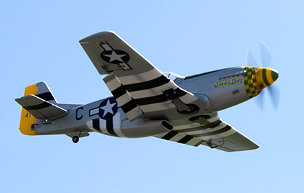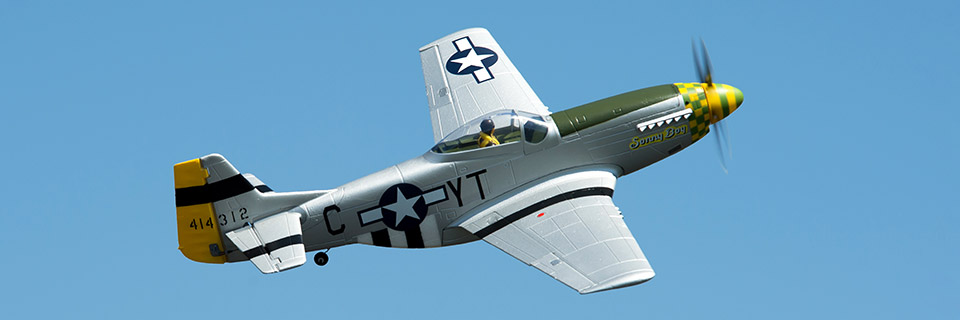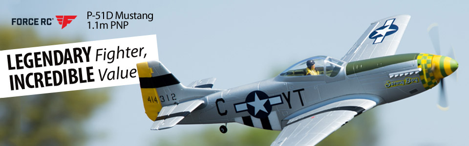 The North American P-51D Mustang used during WWII was a game changer. Its abilities gave pilots formidable inspiration to go beyond mission objectives and realize their âAceâ potential. The Force RCÂŽ P-51D Mustang 1.1m is a brushless powered scale model that brings history's most celebrated fighter to your local park. Electric retracts and functional flaps are already installed so you can experience a well-equipped warbird right away. Lightweight EPO construction combines with composite reinforcement so that flight performance is as forgiving as it is thrilling. Every view of the airframe is saturated with scale detail that's built upon an unmistakable outline. Plus, precision fitting components and a low parts count makes assembly easy so it's possible to be flight ready in minutes.