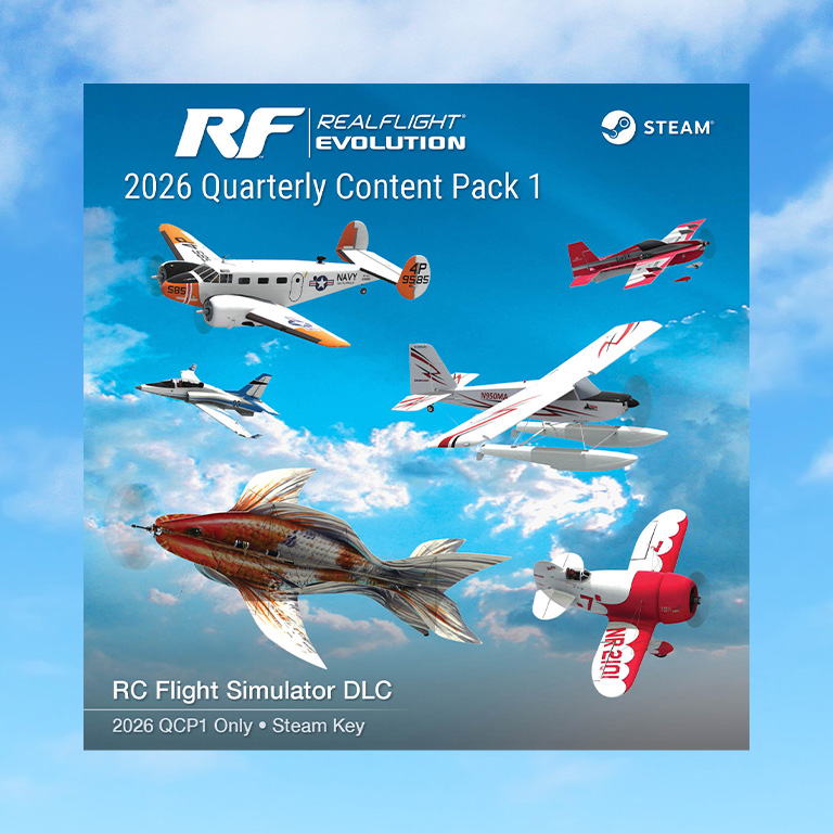 RealFlight Evolution gives you access to new models and flying sites/fields that are released quarterly! Each quarterly content pack includes a unique combination of premium and standard models, plus some also include a flying site/field.